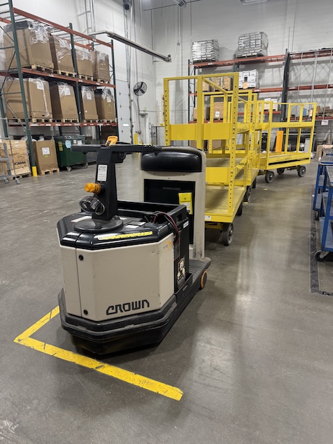 - Crown Electric Tugger with 3 Carts,